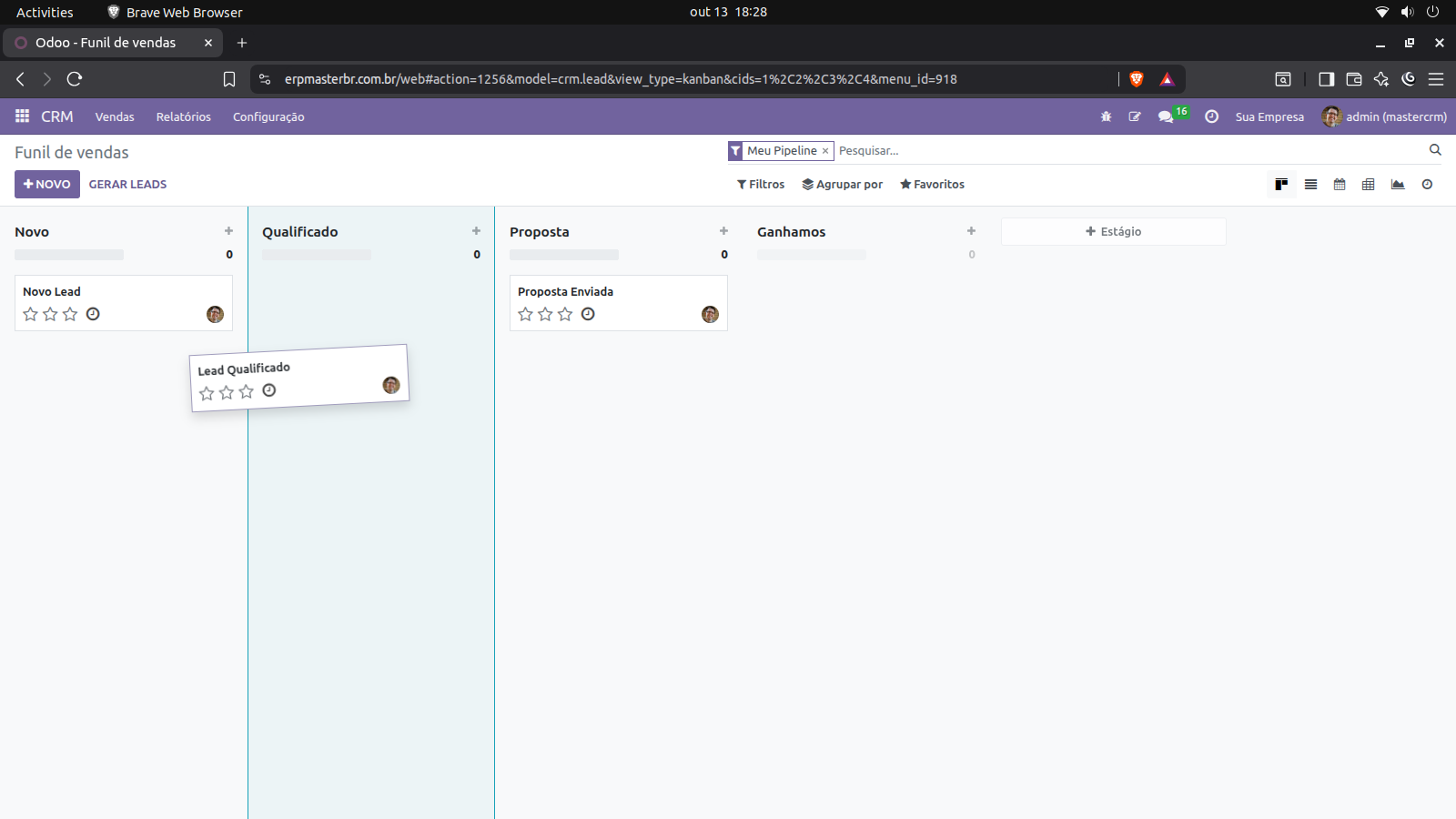 Acompanhe suas oportunidades de forma visual e intuitiva: arraste e solte os cartões (cards) com as informações dos clientes pelos diferentes estágios do funil, desde o lead inicial até o negócio fechado.